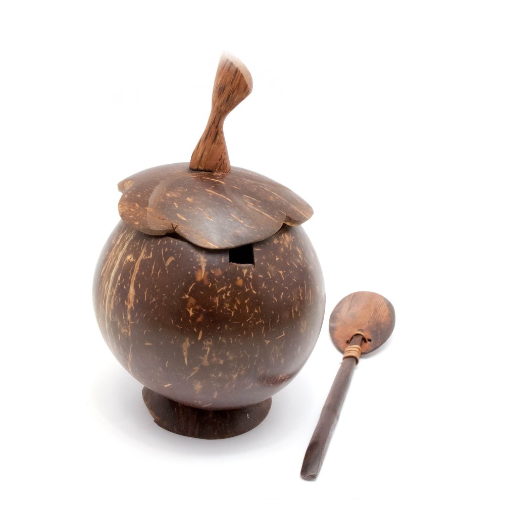 Чашка с ложкой и крышкой из кокоса (15.5х9х9 см) код 29619