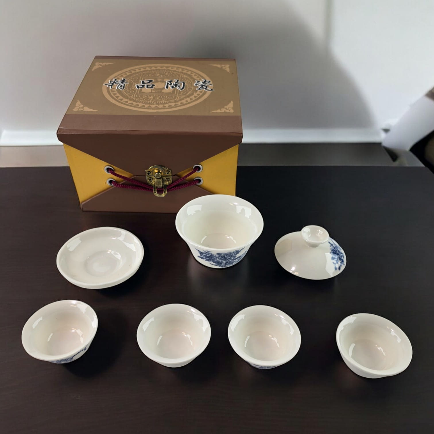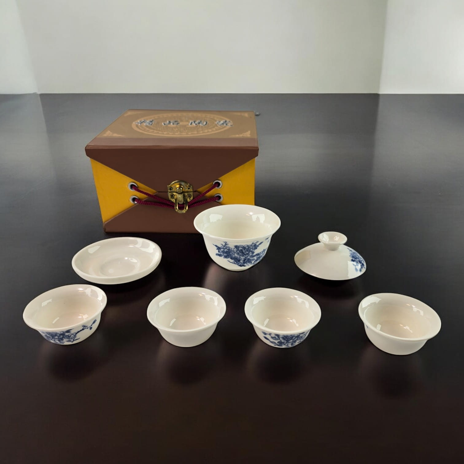 Китайский чайный набор с цветочным орнаментом в подарочной коробке