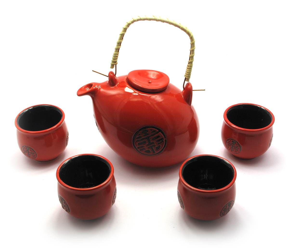 Сервиз керамический (чайник 660мл, h-11см, d-13см; 4 чашки 50мл, h-5,5см, d-5,5см)(27х16х11 см)