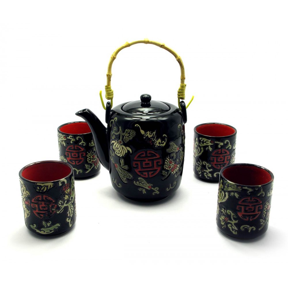Сервиз керамический (чайник 660мл, h-11см, d-13см; 4 чашки 50мл, h-5,5см, d-5,5см)(27х16х11 см)