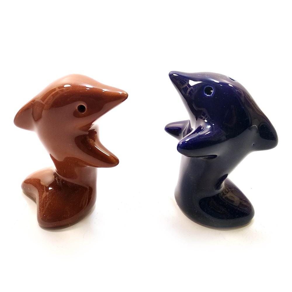 Солонка с перечницей Дельфины сине коричневые (7х7х4 см) код 27899F