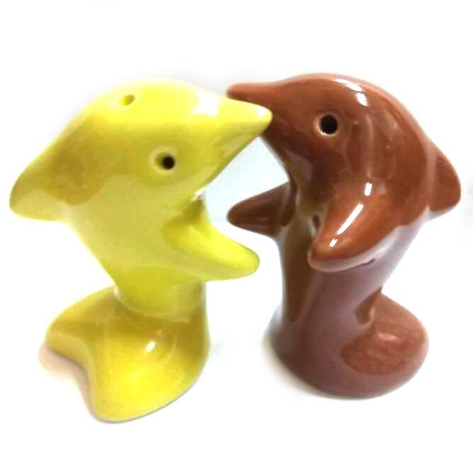 Солонка с перечницей Дельфины желто коричневые (7х7х4 см) код 27899A