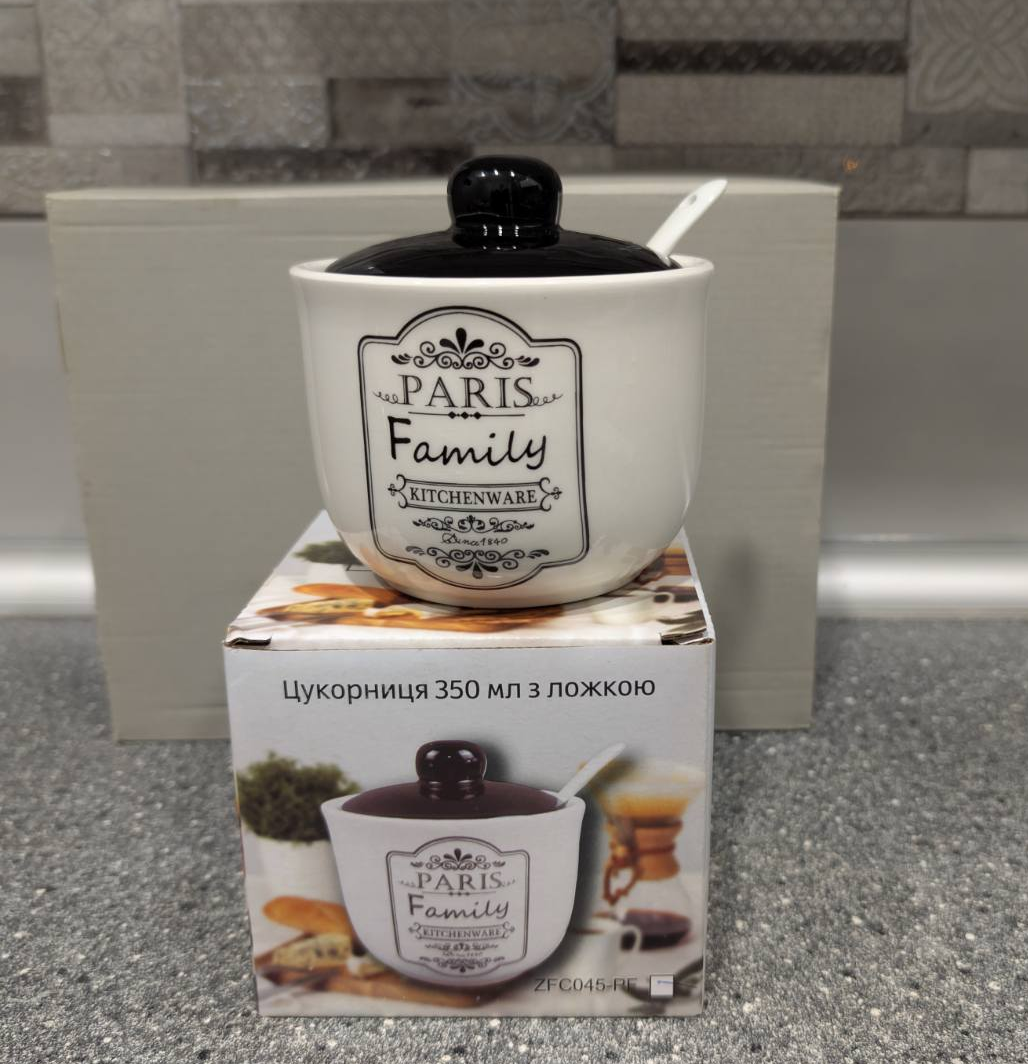 Керамическая банка "Черная кошка" (450мл) с деревянной ложкой для сыпучих