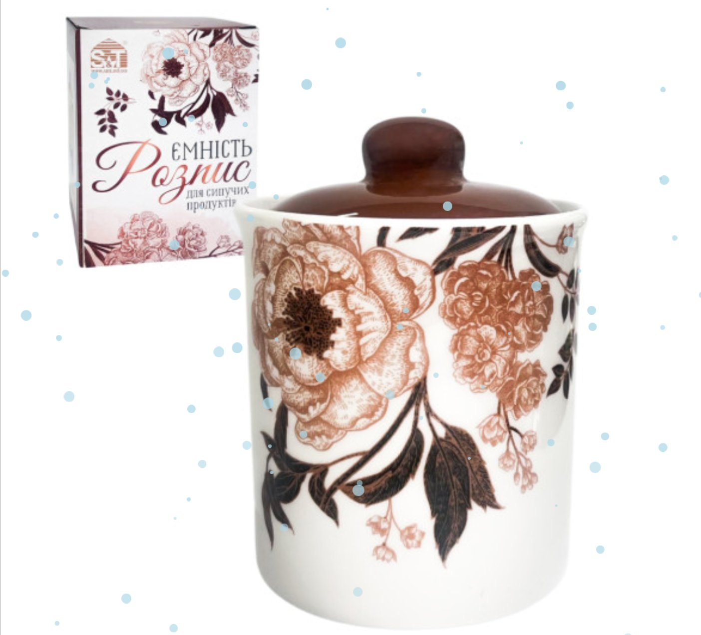 Банка керамическая (1,1мл) белая гладкая с золотыми ромбами с бамбуковой крышкой уплотнителем