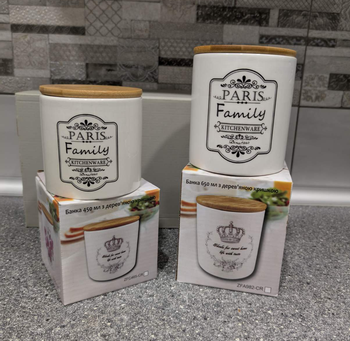 Керамическая банка с деревянной крышкой и силиконовым уплотнителем (650мл и 450мл)
