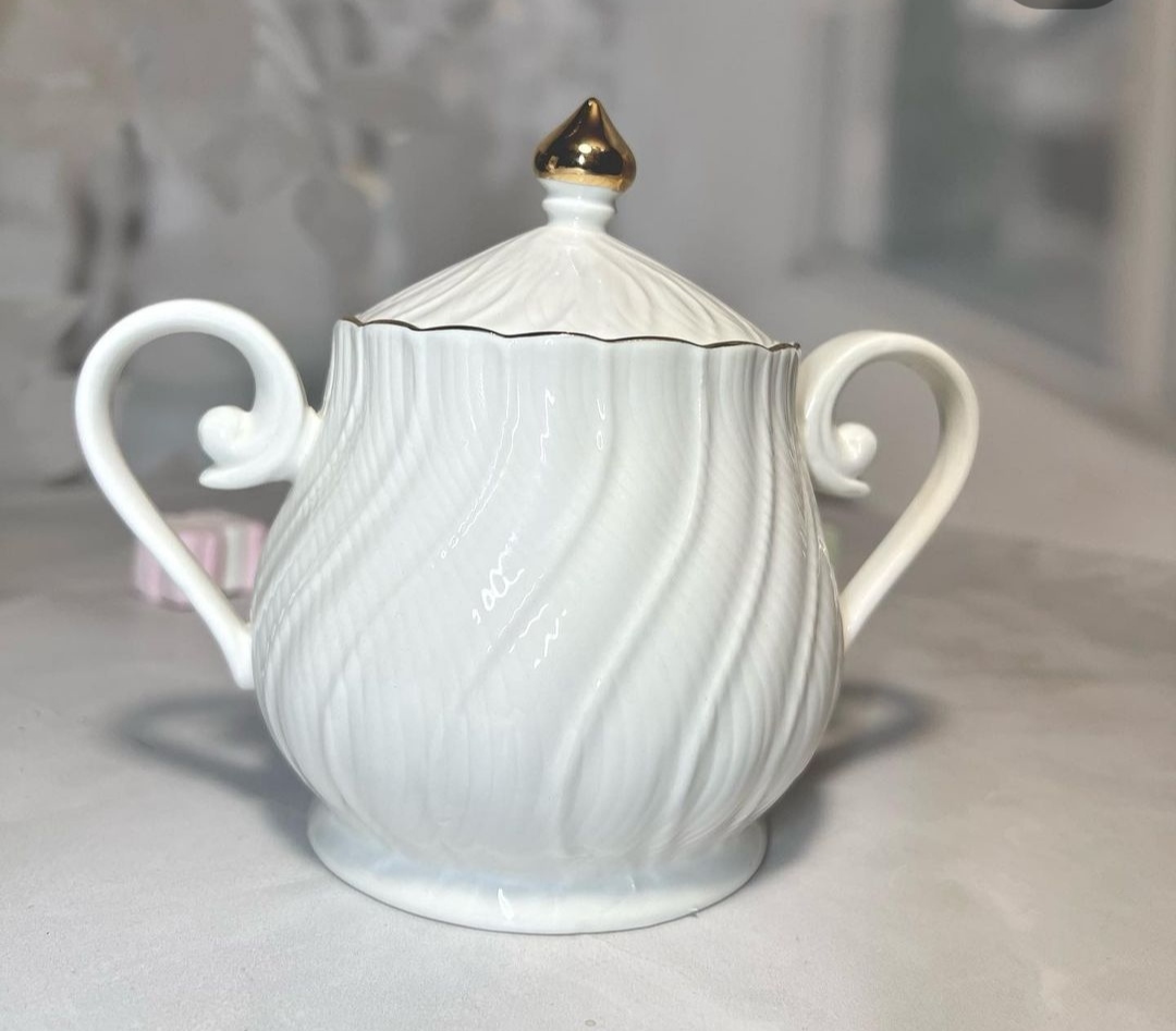 Банка керамическая (1,1мл) белая гладкая с золотыми ромбами с бамбуковой крышкой уплотнителем