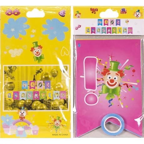 Гірлянда картонна, настінна. Розмір одного прапорця 17*11см. У наборі 13 прапорців та стрічка довжина до 5м, ширина 0,5см.