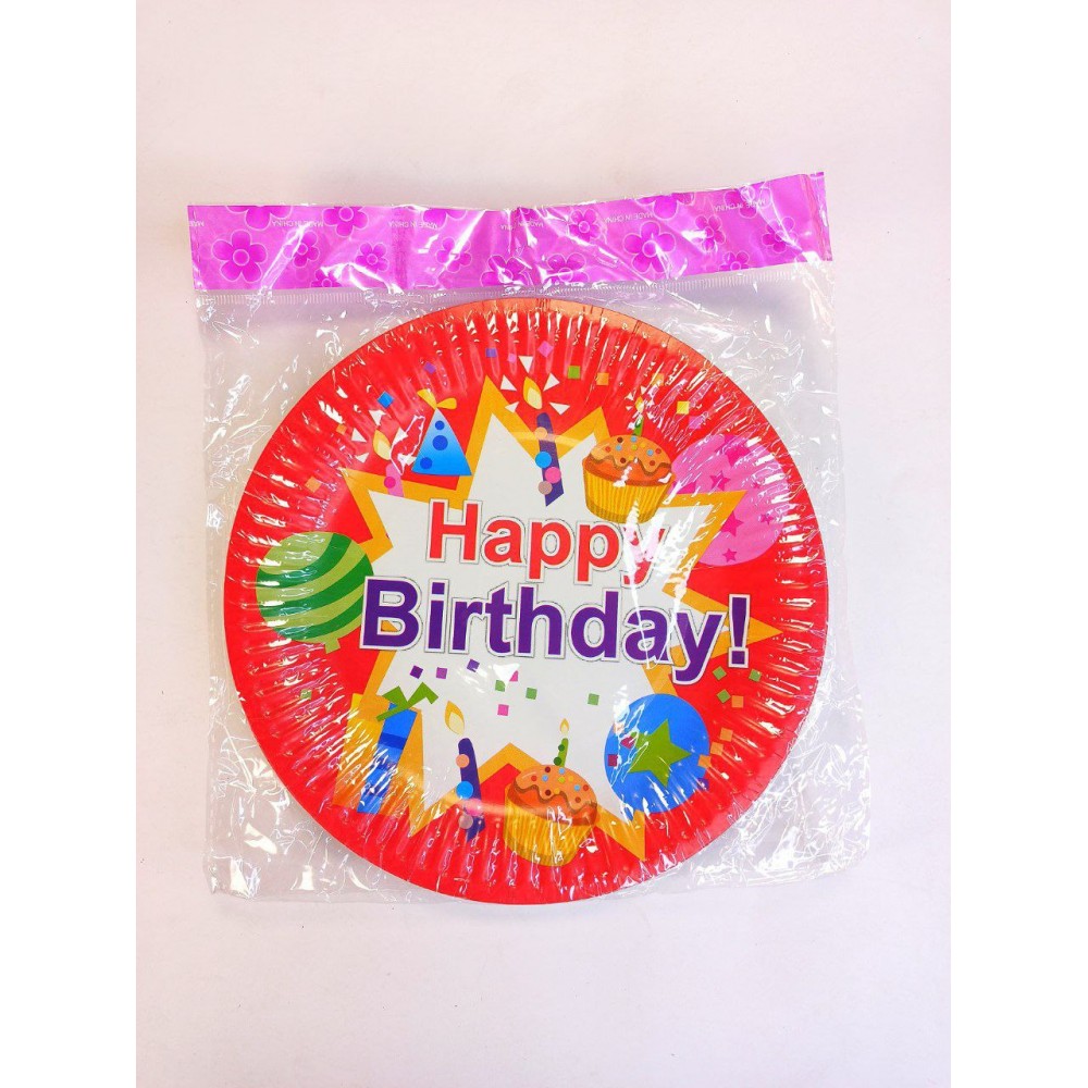 Тарелки бумажные детские одноразовые "С Днём Рождения конфетти" 18 см 10 шт/уп