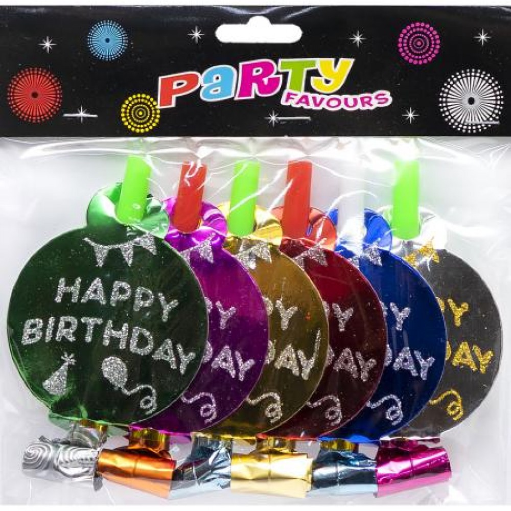 Набір карновальних фольгованих свистків з кругом кольоровим 6 штук 1698-10