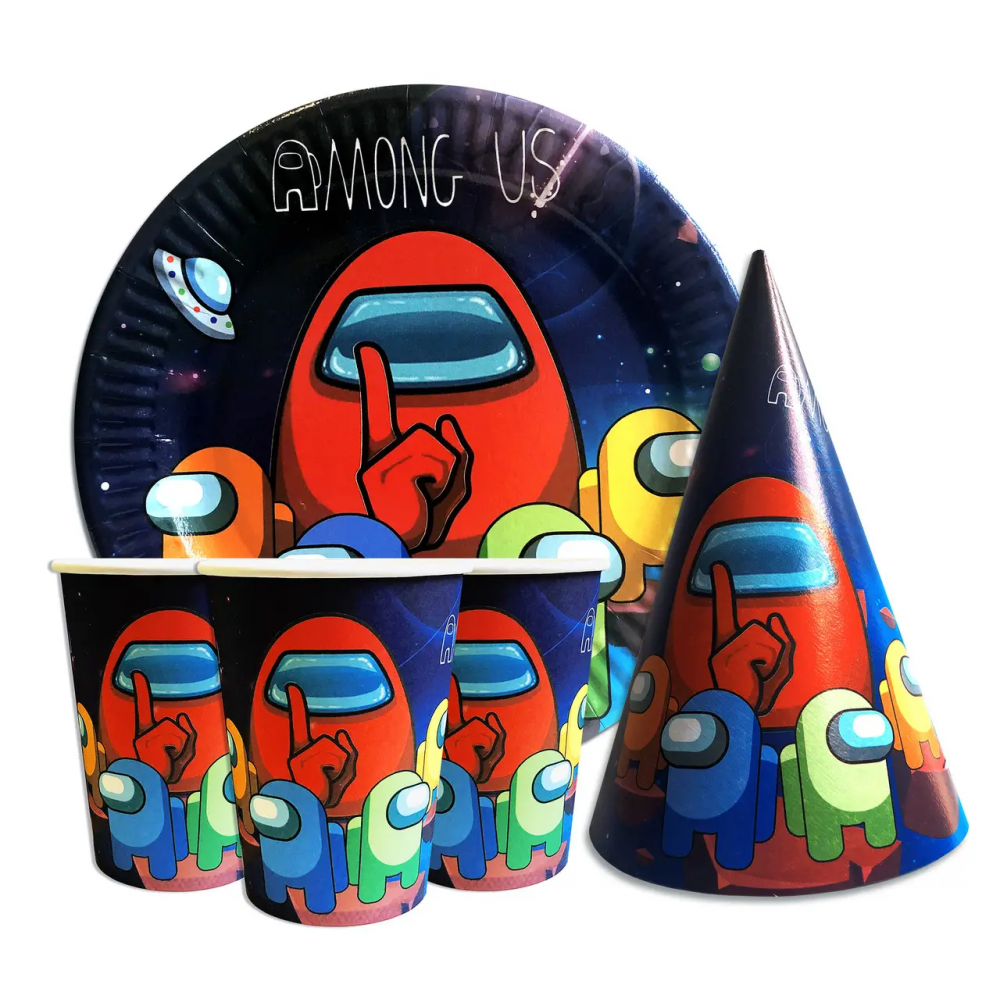 Набор для детского дня рождения "Амонг Ас" Тарелки -10 шт Стаканчики - 10 шт Колпачки - 10 шт
