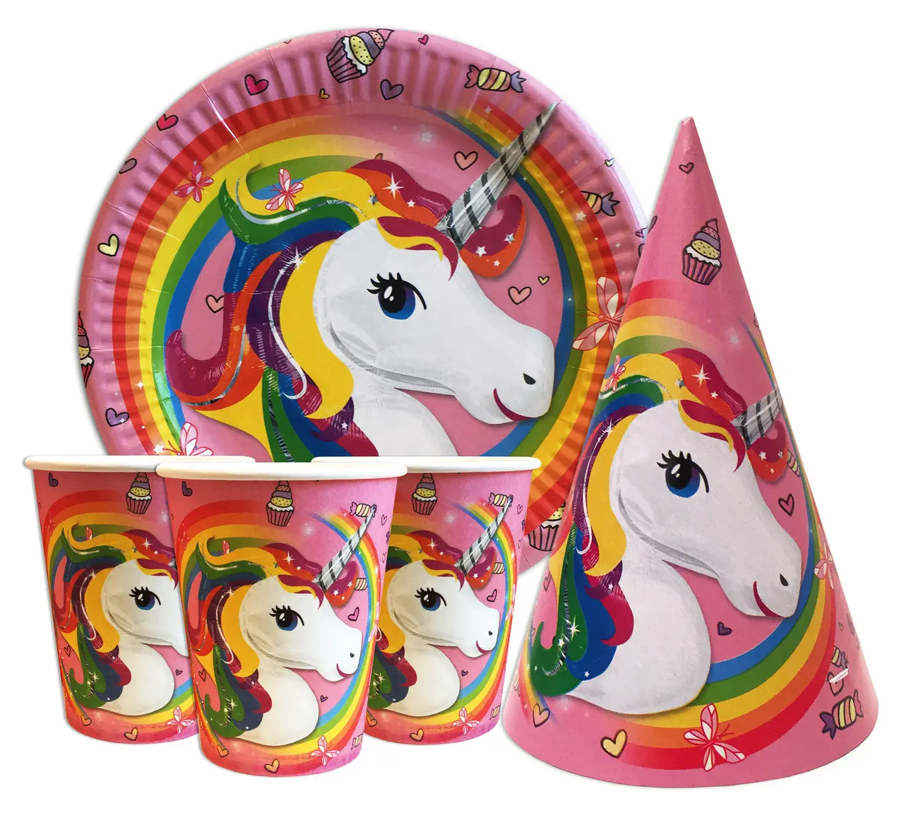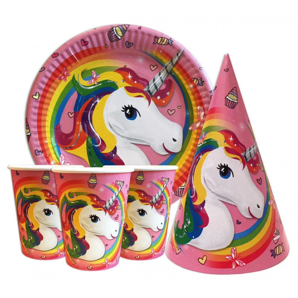 Набор для детского дня рождения " Единорог " Тарелки -10 шт Стаканчики - 10 шт Колпачки - 10 шт