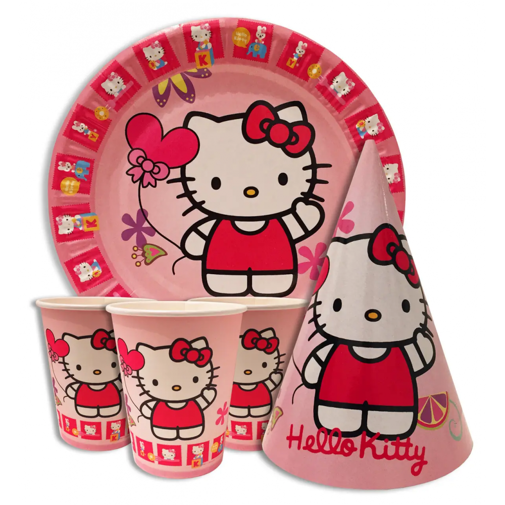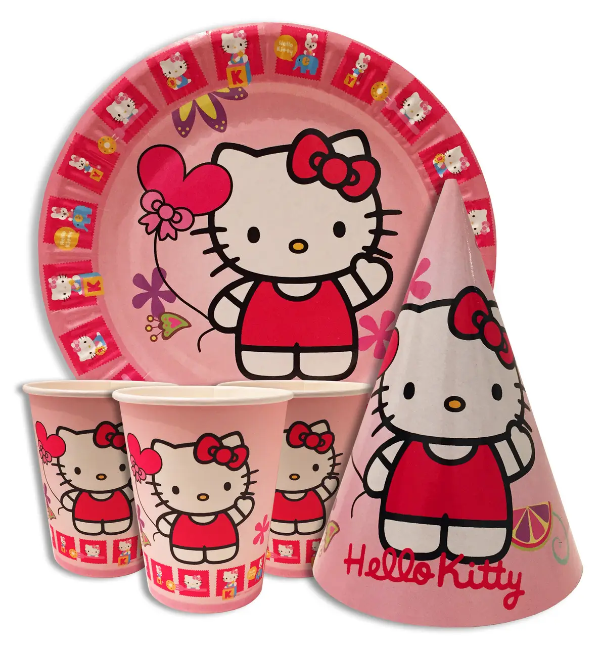 Набор для детского дня рождения " Китти " Тарелки -10 шт Стаканчики - 10 шт Колпачки - 10 шт