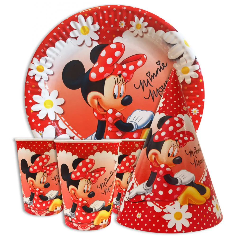 Набор для детского дня рождения " Минни Маус в ромашках " Тарелки -10 шт Стаканчики - 10 шт Колпачки - 10 шт