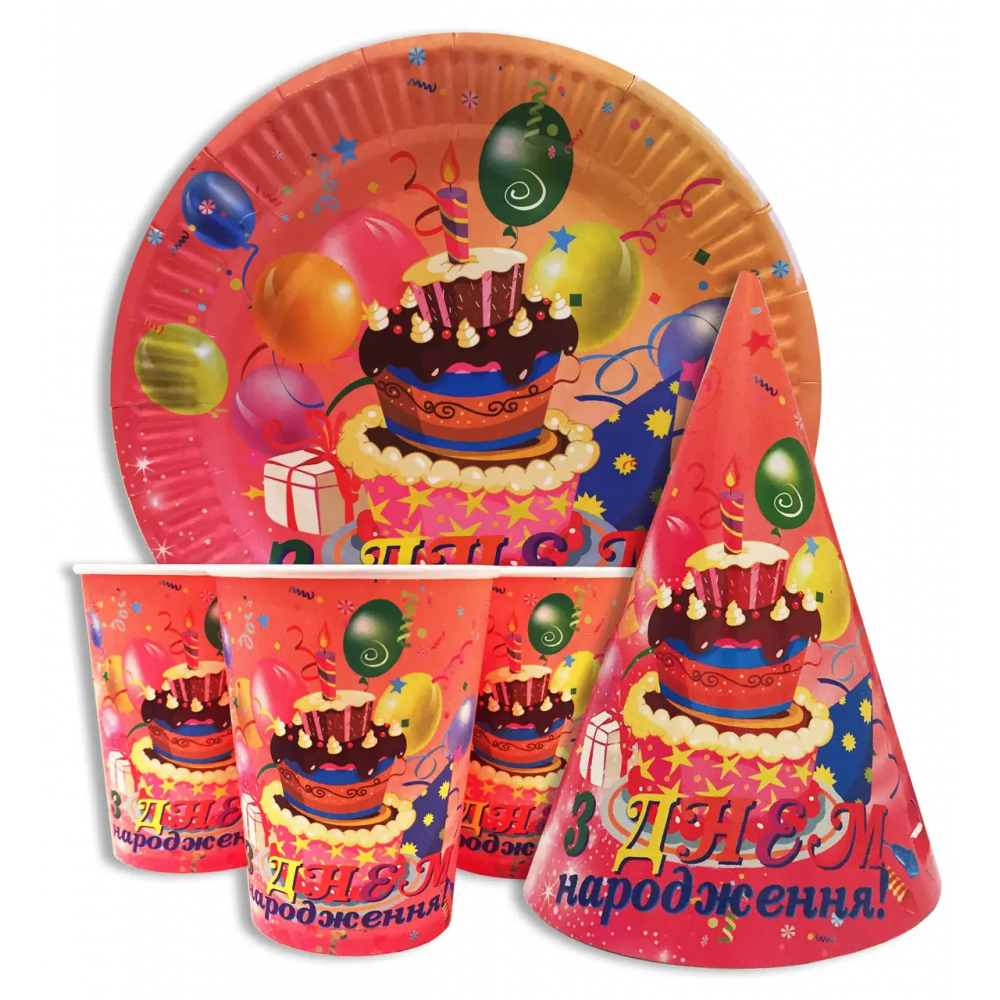 Тарелки праздничные бумажные одноразовые " З Днем Народження ". 18 см.10 шт.