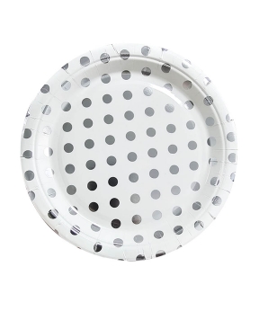 Тарелки бумажные TM Pelican 23cm "Білые с серебряным горошком" 10шт (871702)