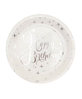 Тарелки бумажные TM Pelican 18cm "Happy Birthday белые с серебряными звездочками" 10шт (871626)