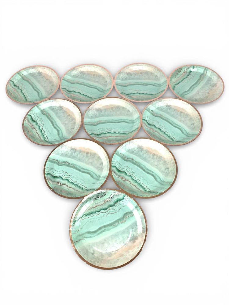 Тарелки одноразовые картонные, 10 шт 23см, 250 грамм, Мрамор с фольгой (CP7319)