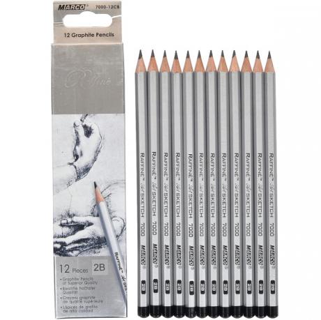 Олівці "Marco" чернографітние без гумки "Raffine". Виготовлені з високоякісних порід дерева. Покриття - кольоровий лак. Стійкий грифель не кришиться при заточуванні. Ідеально підходять для ескізів, малюнків, ілюстрування. Твердість: 2В. Діаметр грифеля: 3,7 мм В упаковці 12 штук.
