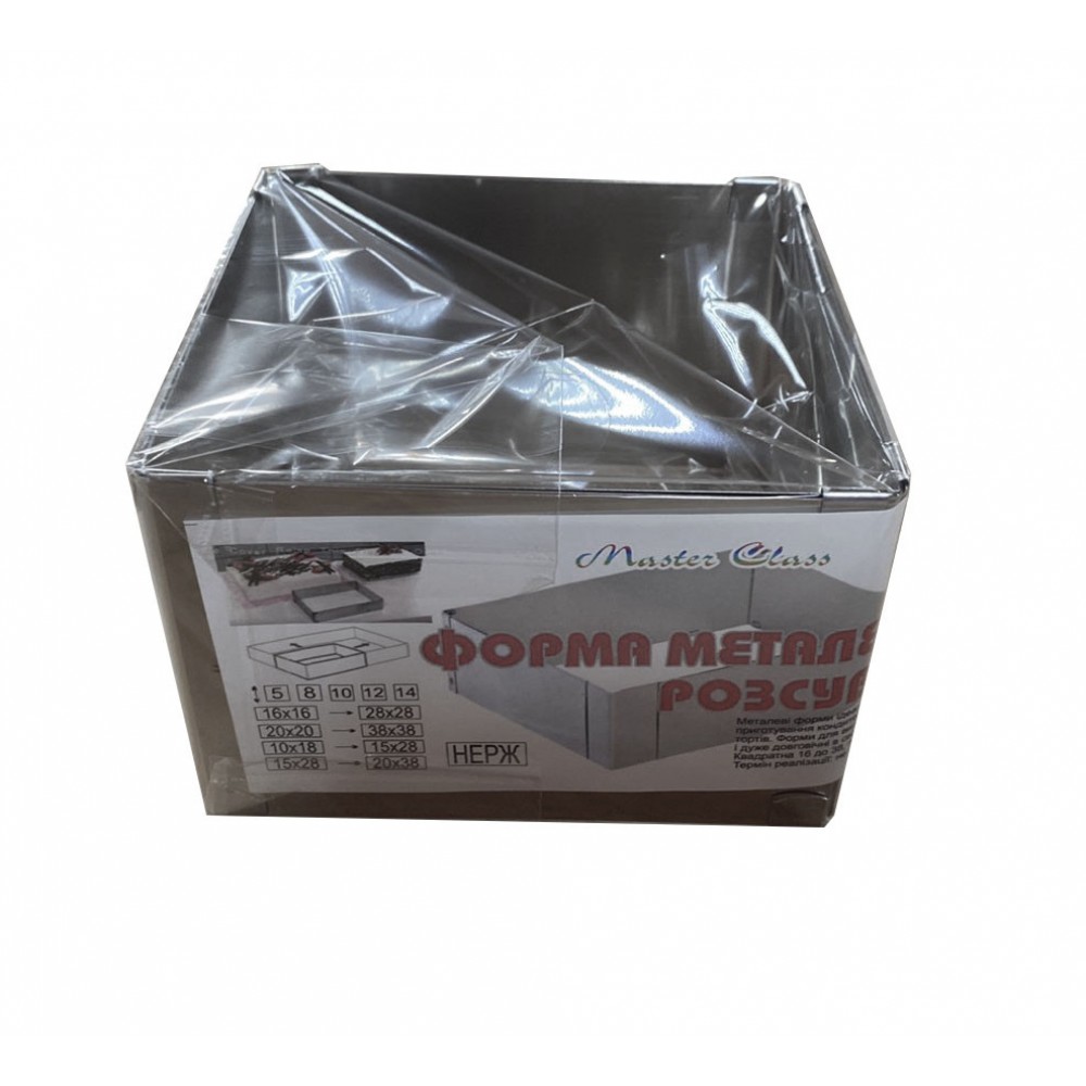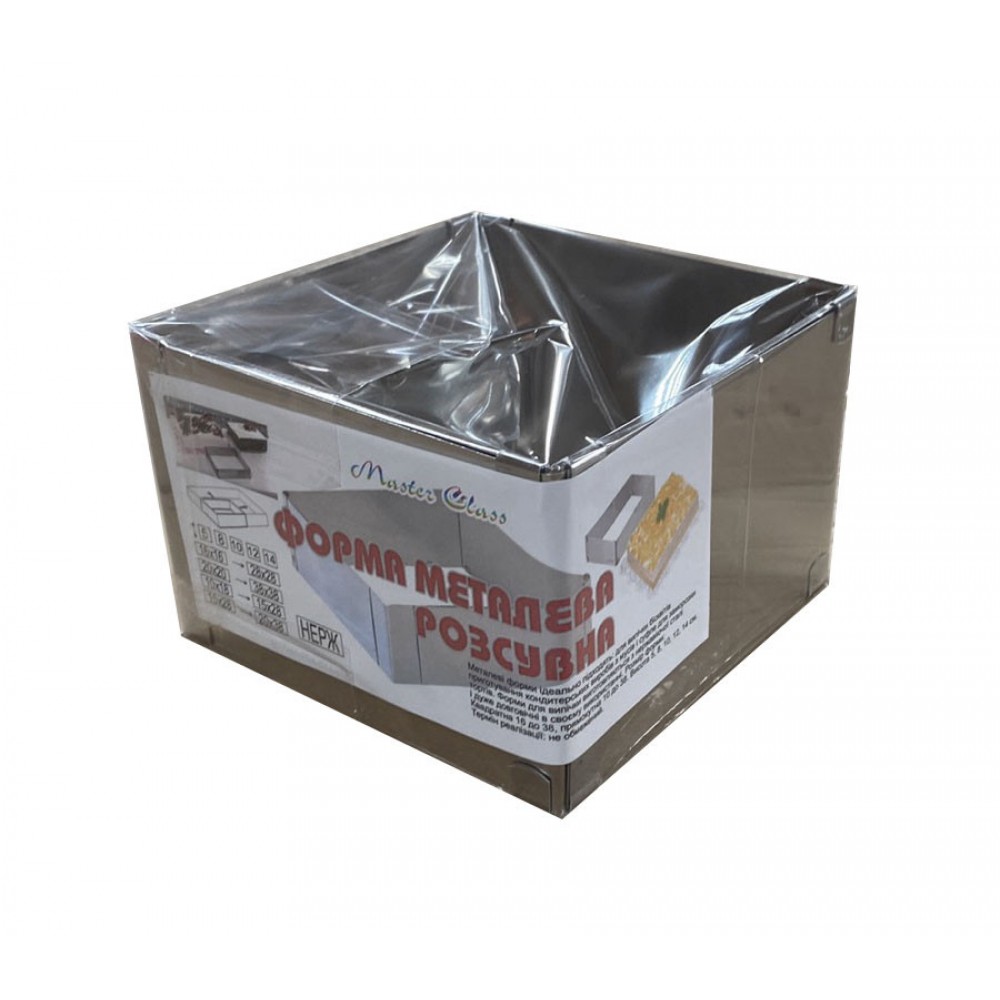Форма кондитерская раздвижная Квадрат для выпечки и сборки тортов высотой 20 см стороны от 15 до 28 см