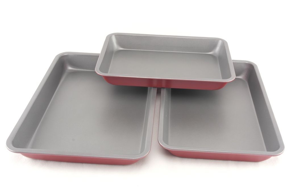 Предлагаем Вам купить оптом набор из трех прямоугольных противней. Удобные и практичные противни разных размеров незаменимы для домашней кухни и подходят для профессиональной кухни. Выполнены из углеродистой стали, отличаются высокой прочностью и износостойкостью. Антипригарное покрытие позволяет легко извлекать готовое блюдо. Снаружи покрыты эмалью. Внутреннее черное покрытие делают формы стильными и привлекательными. Можно мыть в посудомоечной машине.