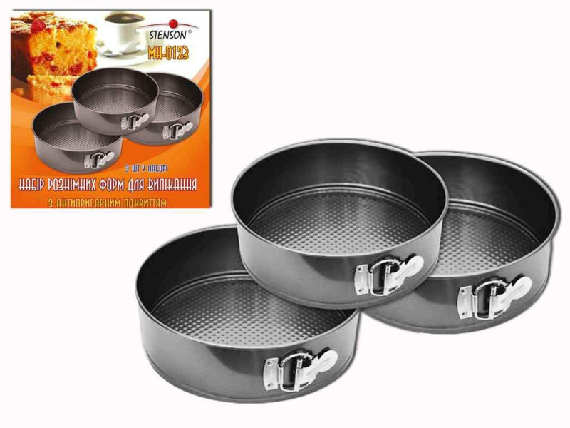 Формы для выпечки Stenson изготовлены из высококачественной углеродистой стали с антипригарным покрытием. Такое покрытие препятствует пригоранию и приставанию запекаемых продуктов, также благодаря антипригарному покрытию формы легко отмываются после использования. А разъемная конструкция данных форм позволяет с легкостью достать и не повредить даже самый пышный и воздушный бисквит.