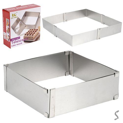 Форма кондитерская раздвижная Квадрат для выпечки и сборки тортов высотой 10 см стороны от 20 до 38 см