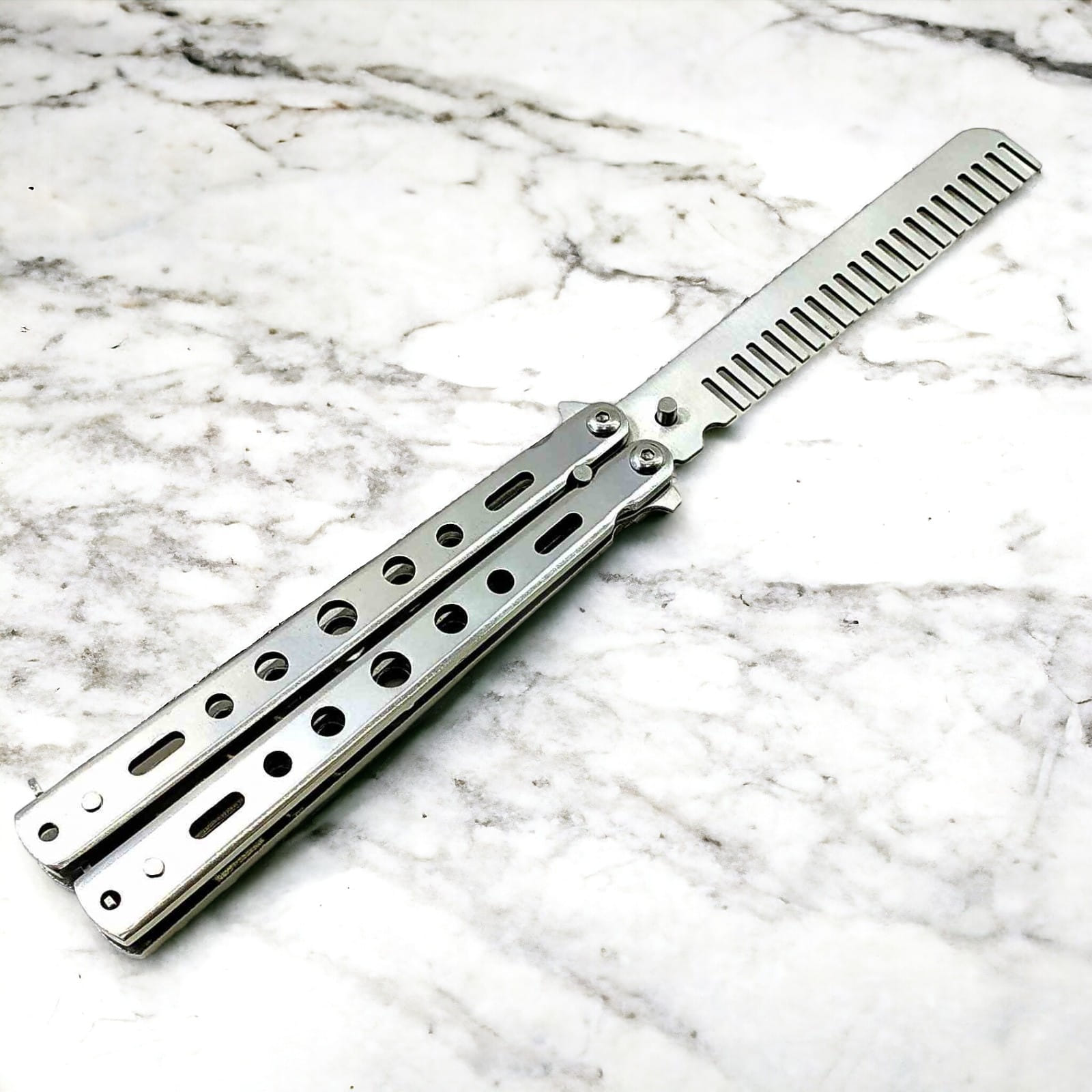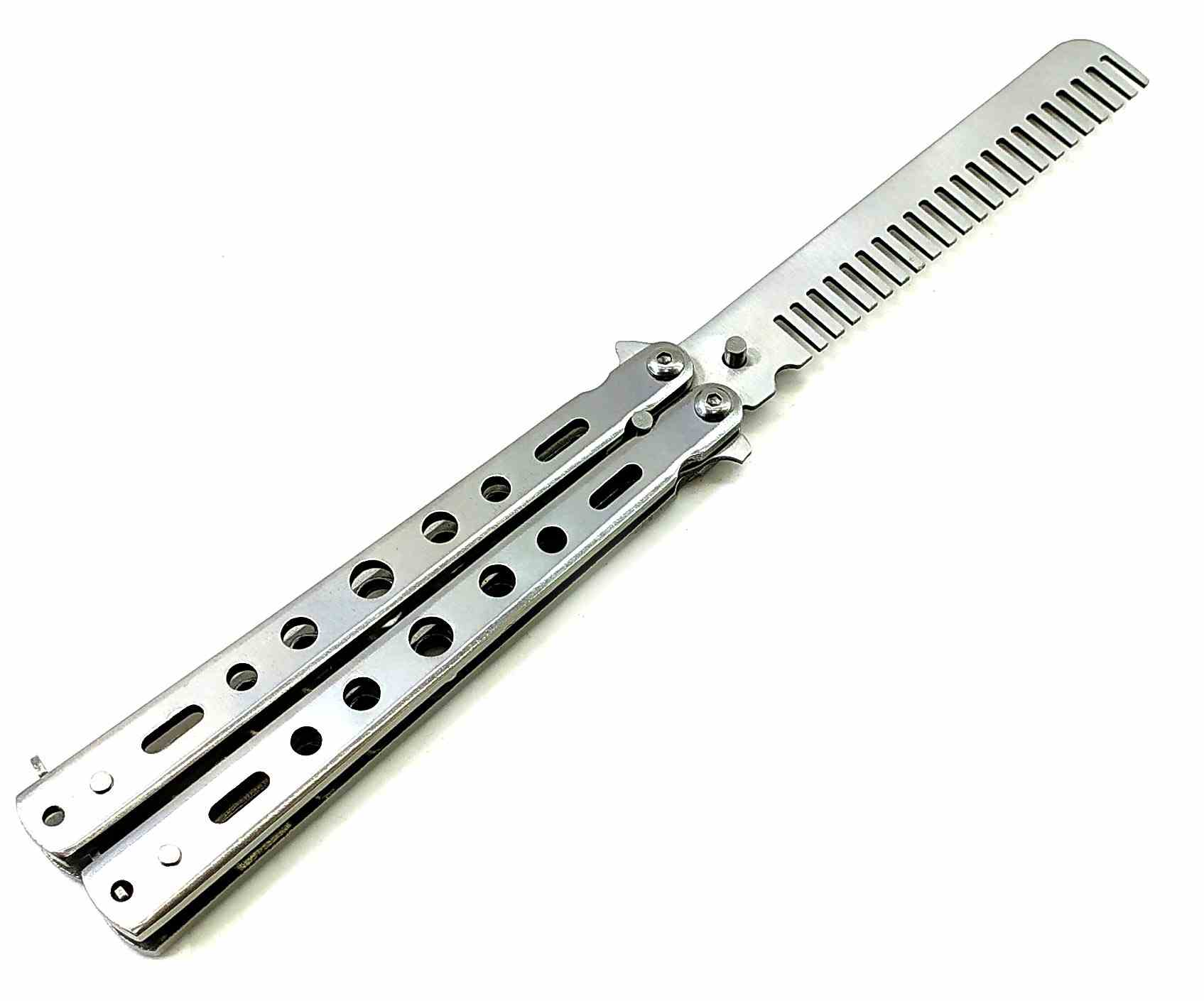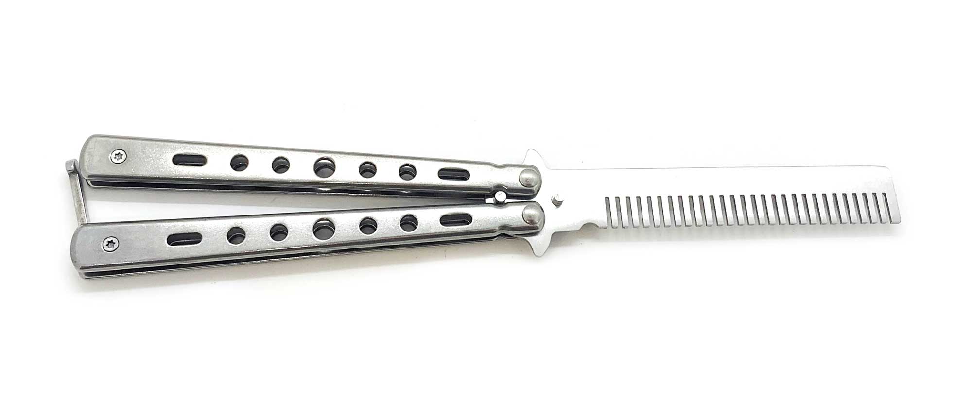 Металлическая расческа, сделанная по конструкции ножа бабочки.