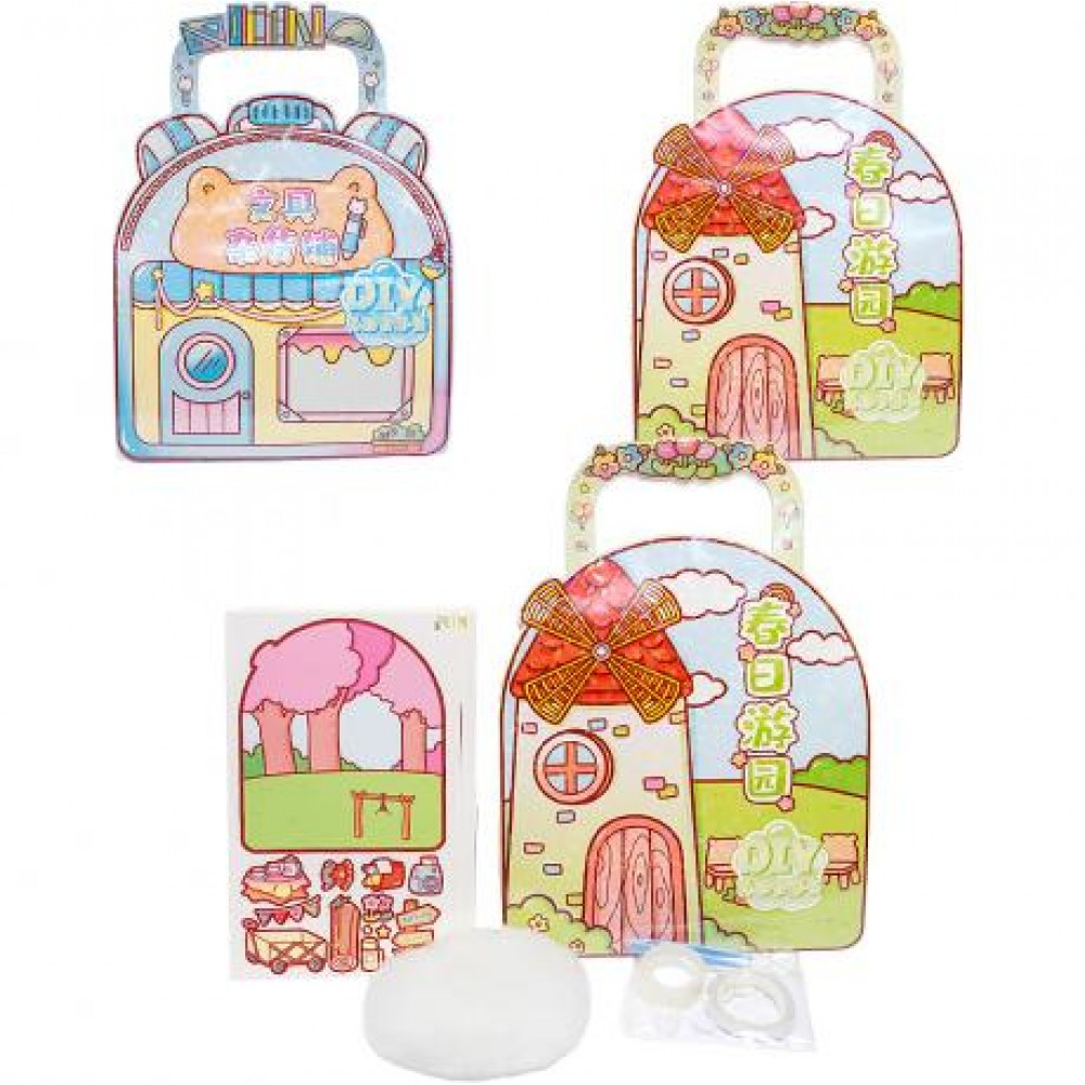 Креативна творчість "Книжка-будиночок 8локацій з паперовою лялькою " У наборі 8 карток (22*13,5см), 1 двосторонній скотч, 1 канцелярський скотч, пінцет, 2 липучки, пачка вати Розмір 22,8*32см