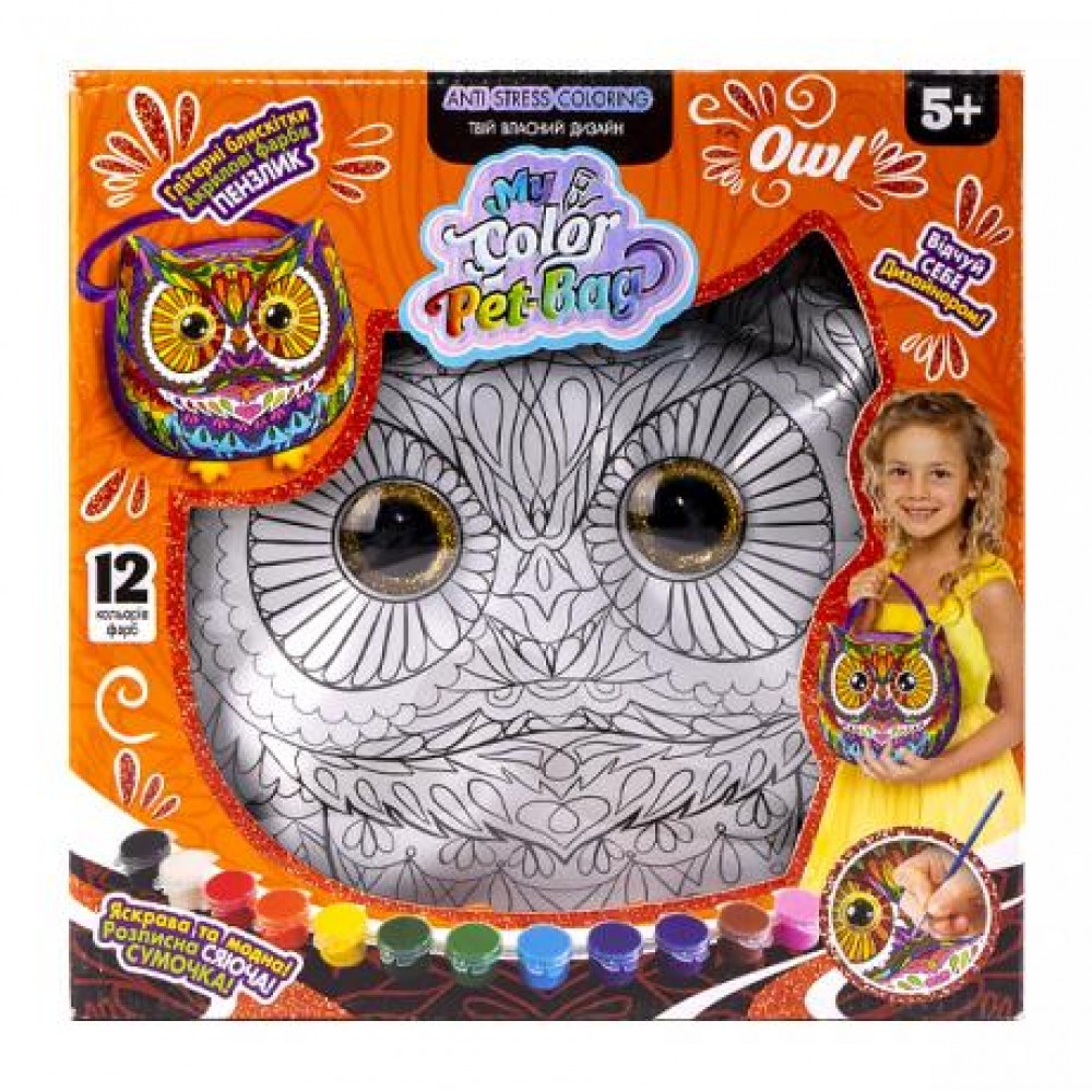 Креативна творчість "My Color Pet-Bag" сумочка.Сприяє розвитку художній здібностей, почуття кольору та гармонії у дітей і дорослих.Веселка яскрівих відтінків в поєднанні з сяючим блиском,відкріває казковий світ творчості без кордонів і дозволить повною мірою розкрити талант дитини. Містить сумку,акрилові фарби 12 кольорів,глітер,пензлик Мова українська. Розміри : 25х24х10см. Вік 5+