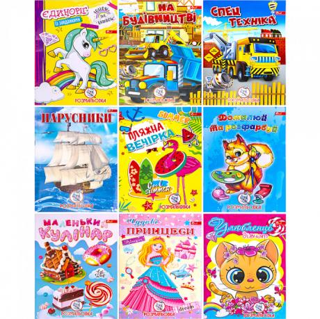 Білизна 98 відсотків, щільність 65г/м², шість аркушів, 8 картинок, обкладинка 110г/м²