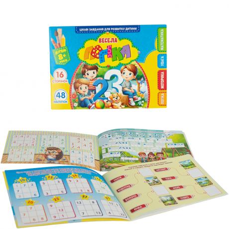 Розмальовка Весела логіка 210*148мм з завданнями 8+ та наліпками 25221/25223/25226