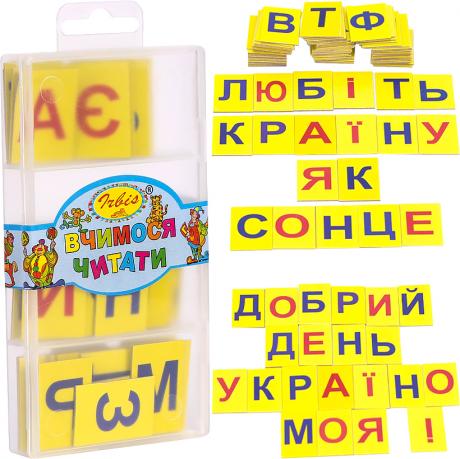 Набір пластикових російських літер і розділових знаків у пластиковому контейнері. Звуковий аналіз букв, слів і речень.