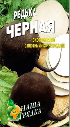 Среднеспелый сорт редьки, предназначен для потребления в свежем виде в осенне-зимний период. Корнеплод округло-плоский, гладкий, иногда бороздчатый, погружен в почву полностью, легко выдёргивается. Поверхность корнеплода чёрная, мякоть белая, сочная, приятного слабоострого вкуса