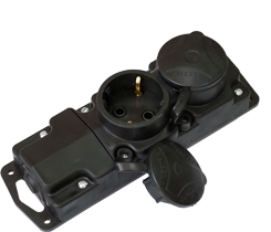Р16-415 Розетка переносная двухместная с заземляющим контактом брызгозащищенная. Беларусь. Напряжение: 250 В. Номинальный ток: 16 А. Климатическое исполнение: УХЛ4. Степень защиты: IP44. Сечение проводников: от 1,5 до 2,5 мм². Материал корпуса: армлен. Габаритные размеры: 186,5х58,5х50) мм.