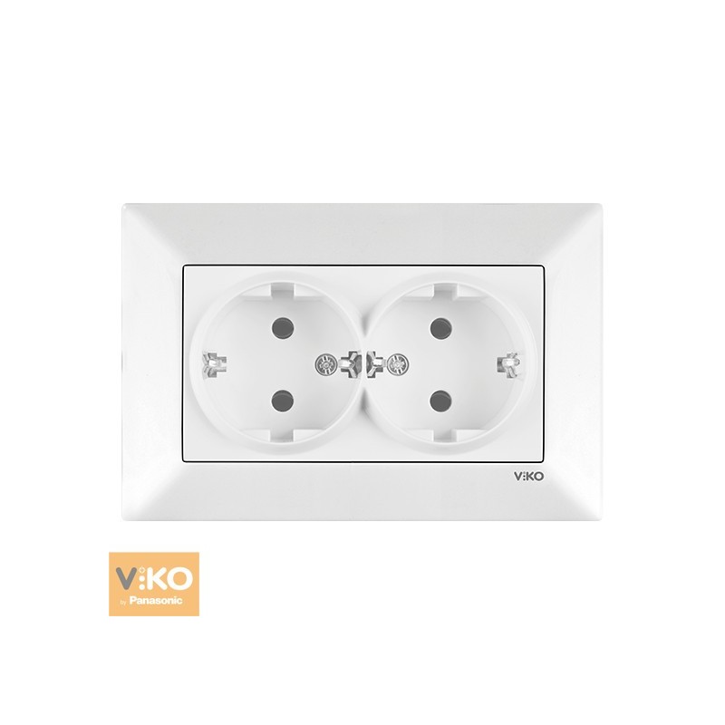 Розетка двойная с заземлением для внутреннего монтажа (в один погдрозетник). Напряжение:250В. Номинальный ток: 16А.Материал: пластик. Страна производитель: Турция.