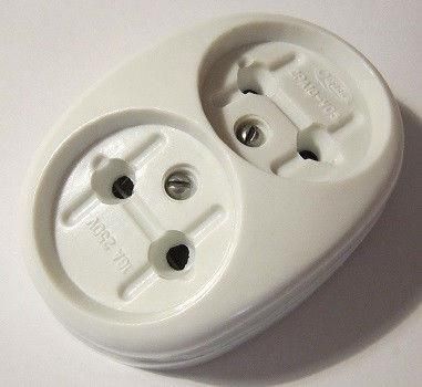 2РА16-У06 Розетка без заземляющего контакта для открытой проводки, с керамическим основанием, с подпружиненными контактами. Размер: 90х65. Номинальный ток: 16А. Номинальное напряжение: 250В