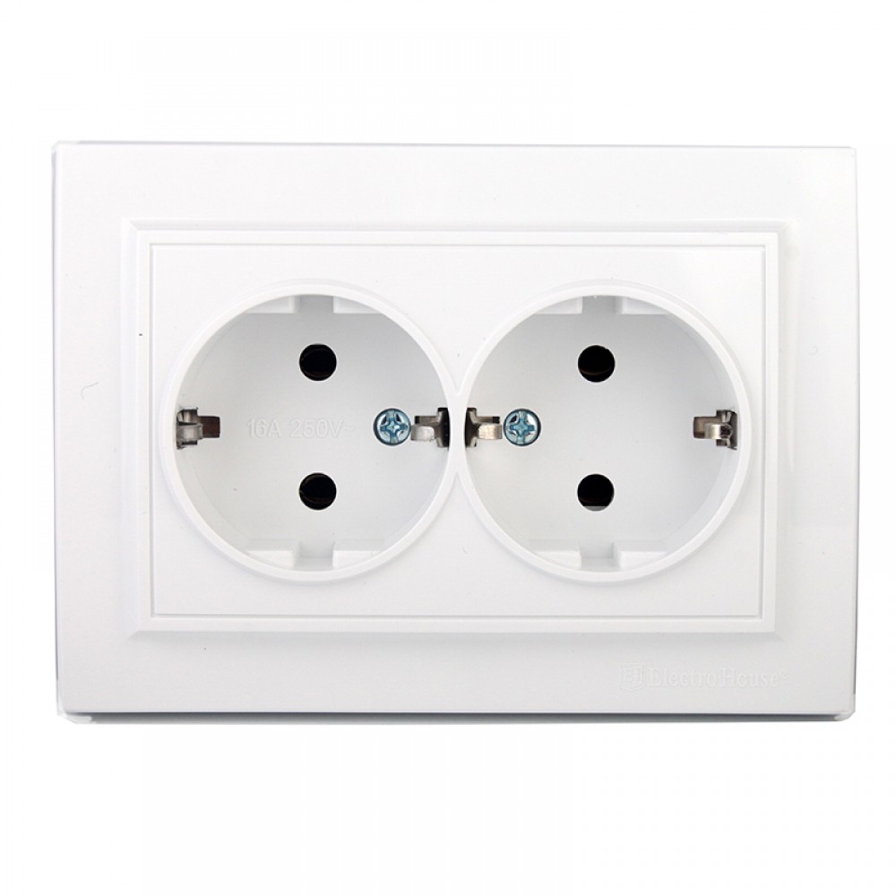 Розетка двойная с заземлением предназначена для обеспечения безопасности. При отсутствии заземления существует опасность поражения электрическим током. Рассчитана на два потребителя питания. Изготовлена из ударопрочного пластика белого цвета. Лаконичный дизайн подходит под любой интерьер и не выделяется на общем фоне.