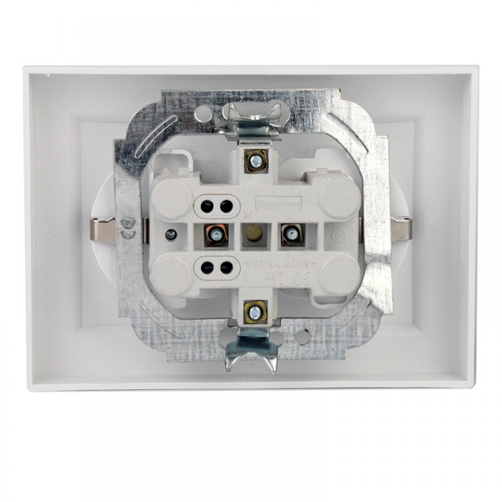 Внутренний механизм имеет керамическую основу, позволяющий выдерживать большие токи. Рассчитана на максимально допустимое напряжение 250 В с частотой 50Гц и номинальным током 16 А. Качественная сборка всех элементов. Оборудована монтажными креплениями, надежно фиксируют в подготовленные места стены. Зажимы, клеммы, винты плотно посажены в диэлектрической колодке и не подвергаются деформации во время работы. Долговечна, до 40 000 циклов. Имеет тип защиты IP 22. Используется в бытовых и производственных сферах. Монтируется при полном обесточивании объекта.