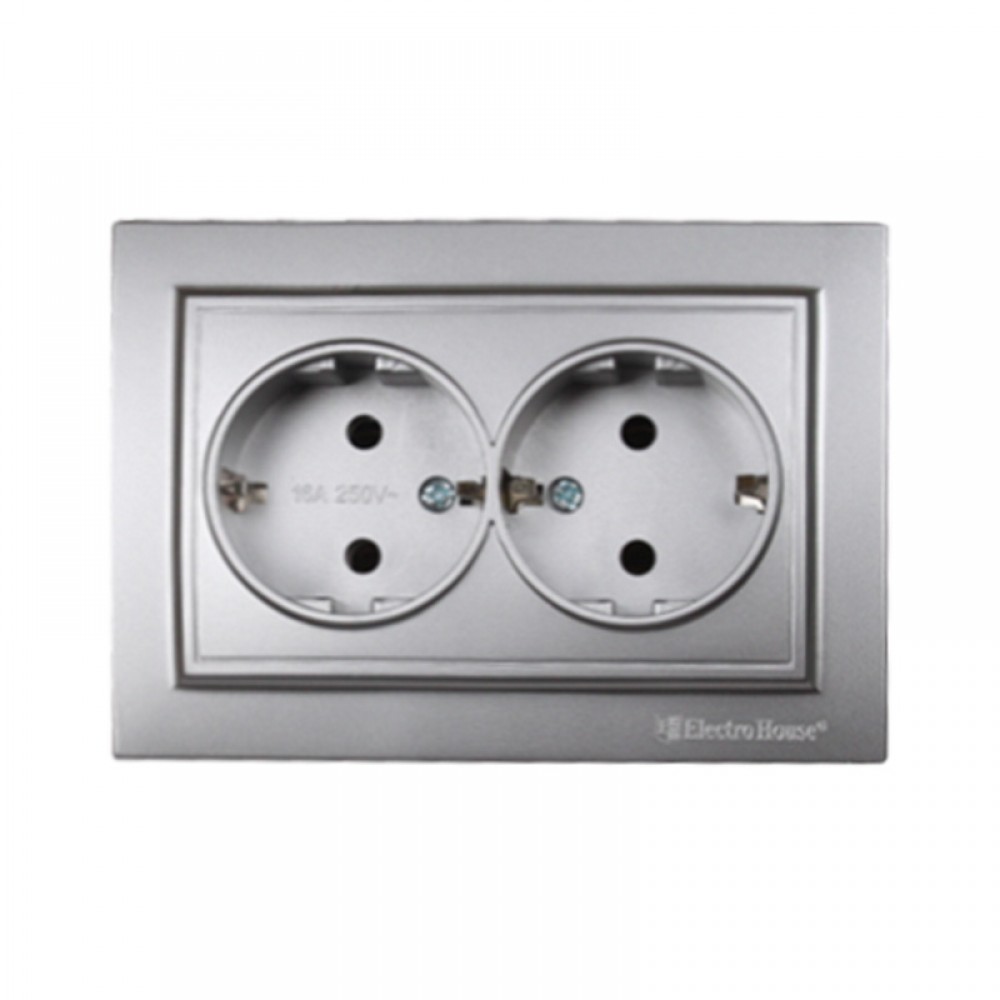- Модель:Розетка двойная с заземлением 16 А Enzo Серебряный камень