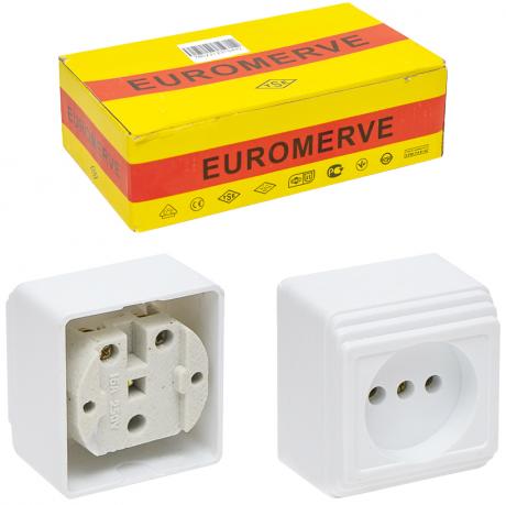 Розетка одинарна, біла пластикова на 1 вилку. Лицьова частина – білий глянсовий пластик. Накладна розетка - колодка знаходиться зовні стіни. Параметри: 16А 250В Розміри 5,5 х5,5х4см