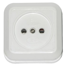 РА16-У18 Розетка без заземляющего контакта для открытой установки с керамическим основанием с подпружиненными контактами. Размер: 63х63. Номинальный ток: 16А. Номинальное напряжение: 250В