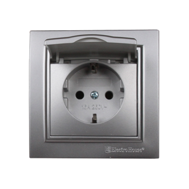 Розетка с крышкой Термопластик IP44 с/з 16 А Enzo Серебряный камень от компании Electro House отлично подойдет для любого интерьера. Современный дизайн и эргономичная конструкция помогут ей хорошо вписаться в любое оформление офисного или жилого помещения. Цвет Серебряный камень будет гармонично сочетаться с цветовым решением различных типов помещений. Крышка делает розетку EH-2116P-ST не только более защищенной и безопасной в эксплуатации, но и эстетичной. Она защищает механизм розетки от попадания пыли, брызг и мелких посторонних предметов. Для большей безопасности эксплуатации изделие оснащено заземлением. Корпус розетки изготовлен из ударопрочного термостойкого пластика, степень защищенности от пыли и влаги IP44. В конструкции механизма использован термопластик.