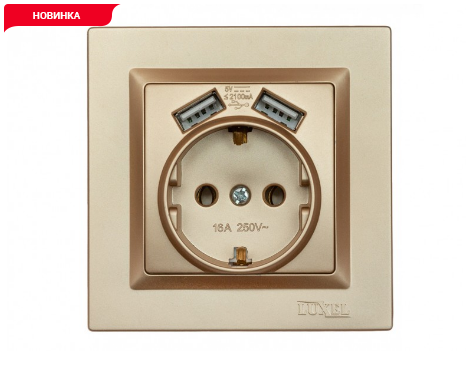 РОЗЕТКА С ЗАЗЕМЛЕНИЕМ И ДВУМЯ USB ПОРТАМИ 2.1A LUXEL JAZZ (9630) БРОНЗОВАЯ