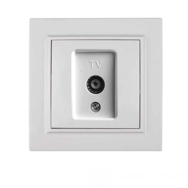 Розетка телевизионная незаменима в современном доме. Выполнена в белом мягком цвете, не контрастном, не выделяется на общем фоне. Защитная панель изготовлена из ударопрочного пластика. Внутренний механизм имеет надежное крепление оплетки и центральной жилы. При длительном использовании передаваемый сигнал не искажается.
