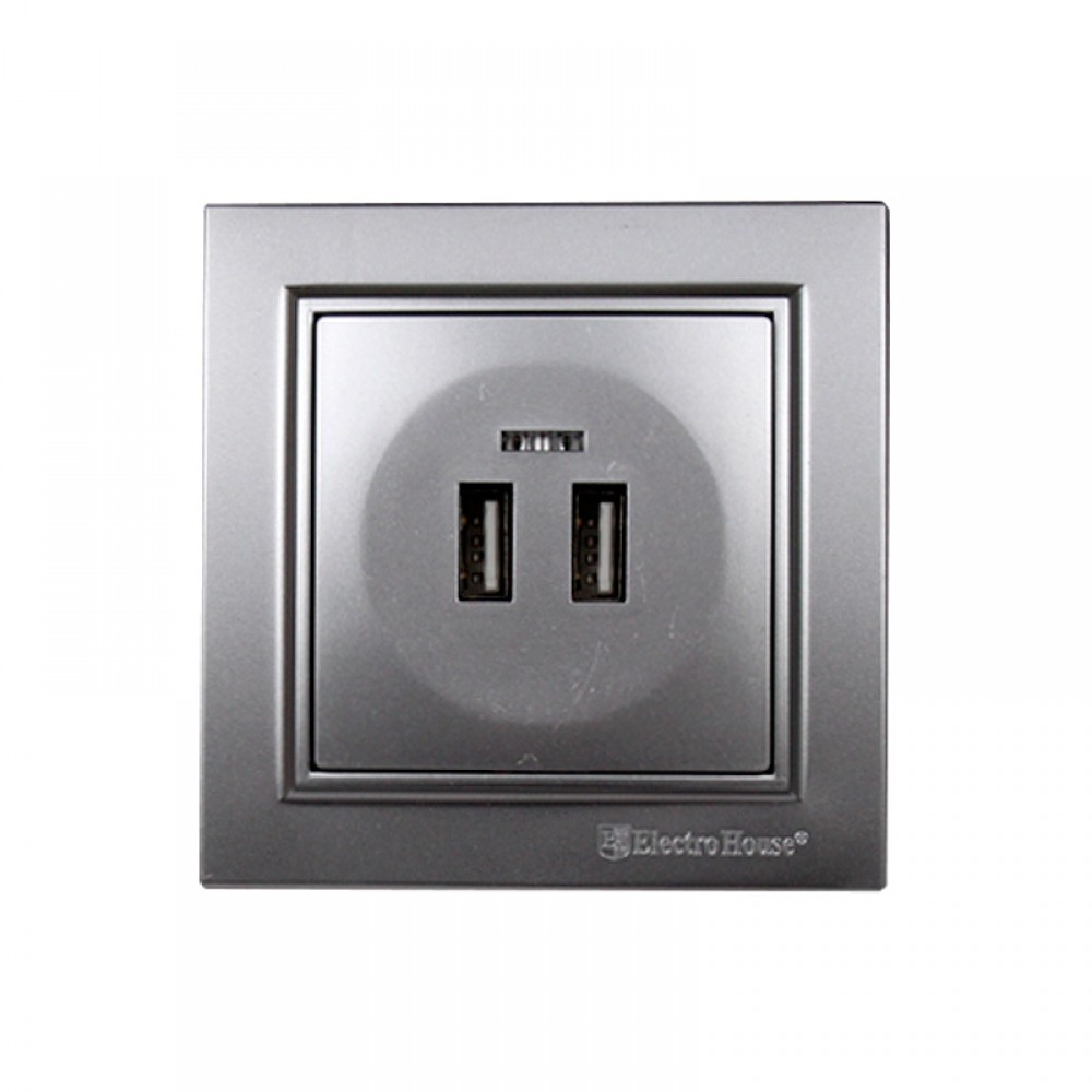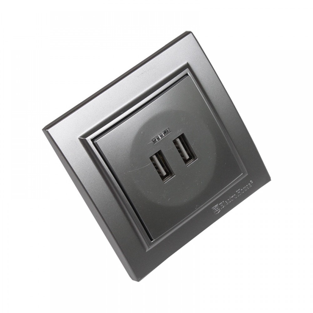 - Модель:Розетка USB (2 порта) 2 A Enzo Серебряный камень
