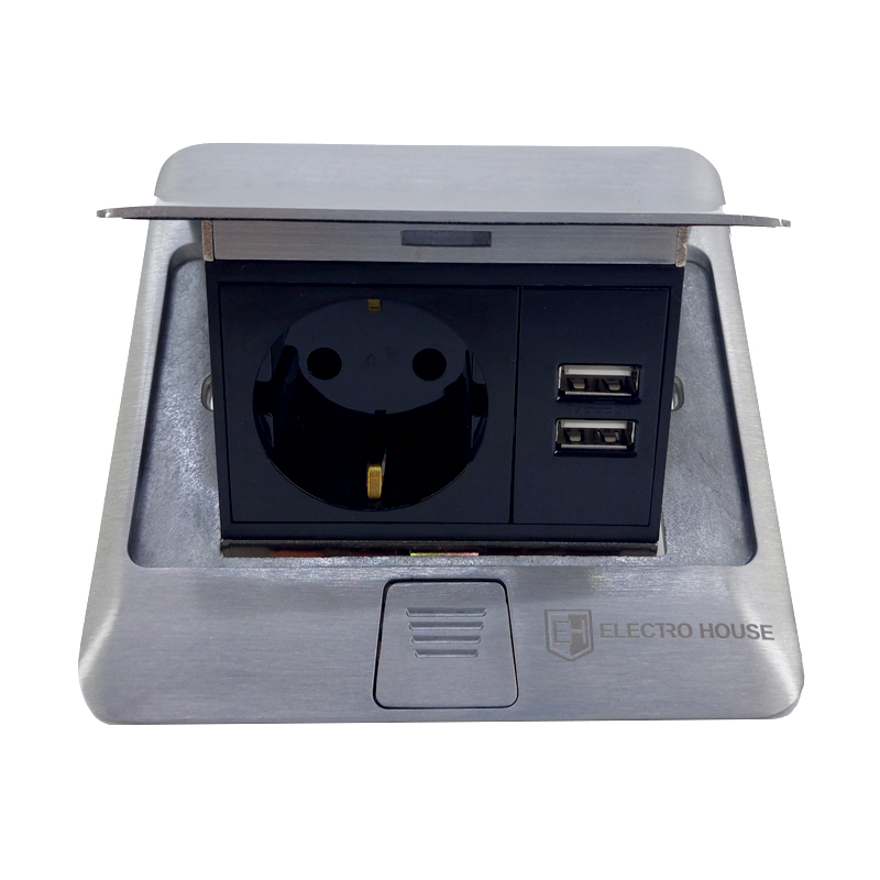 Розетка врезная для пола Алюминий 16 А + 2 USB 2,1 А IP44 EH-F008 от компании ElectroHouse предназначена для подключения к электросети различных электроприборов требующих для своего питания напряжения 220В (номинальный ток 16А) и разъемы usb - 5В (номинальный ток 2.1А).