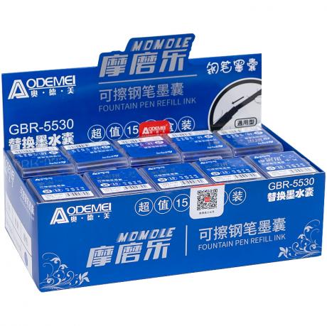 Капсули до пір'яної ручки "пише-стирає". Колір синій. В пластиковій упаковці 15 штук. Ціну зазначено за 1 капсулу