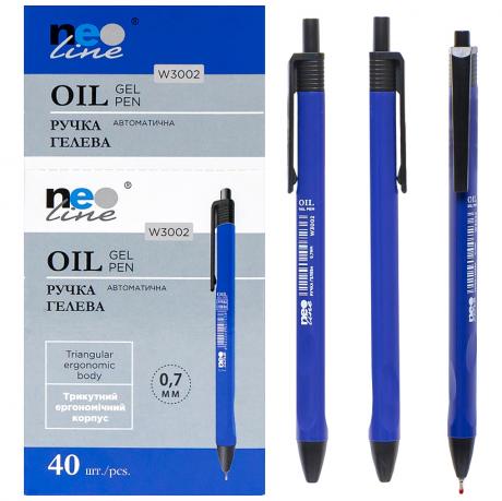Ручка "Neo Line" гель. Товщина лінії 0,7 мм Матеріал корпусу пластик-сатин. Автоматична. У упаковці 40 штук. Колір: синій.