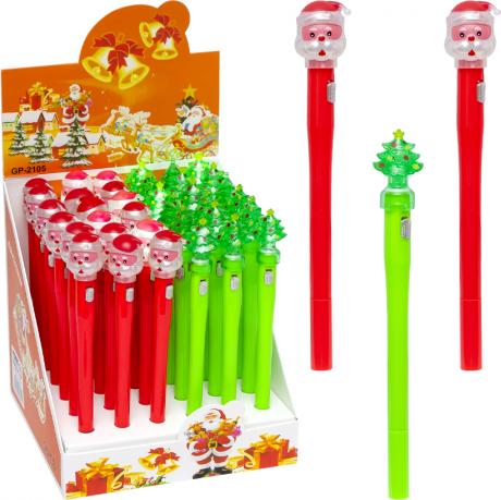 Ручка гелева "Дід Мороз / Ялинка" світиться - не прозорий кольоровий пластиковий корпус, змінний стержень. На корпусі є знімний декор- фігурка, товщина 0,5 мм. Колір синій