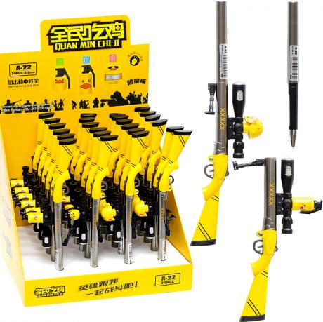 Ручка гелева. Пластиковий кольоровий корпус у формі снайперської гвинтівки, оптичний приціл - ліхтарик, товщина лінії 0,50 мм, змінний стрижень. Загальна довжина ручки 22,5 см Колір синій.